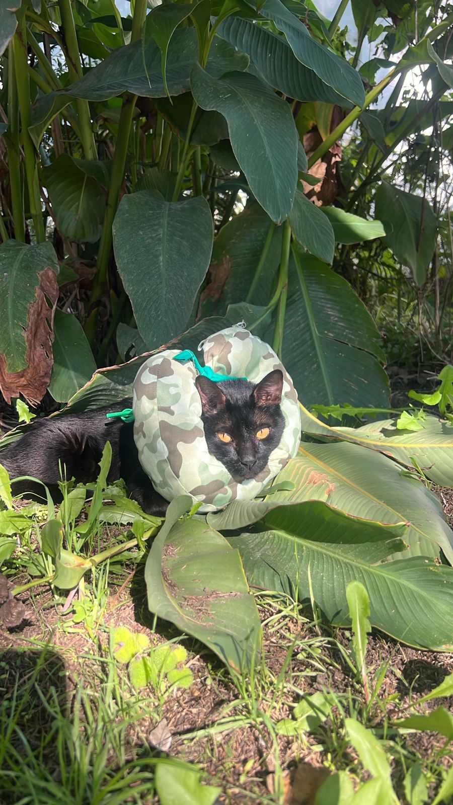 El postoperatorio nos reveló una realidad cruel: el collar isabelino tradicional de plástico era una tortura adicional. Rubia no veía de un ojo, y el plástico rígido hacía que se chocara con las puertas, no pudiera dormir cómoda y tuviera dificultades para comer.